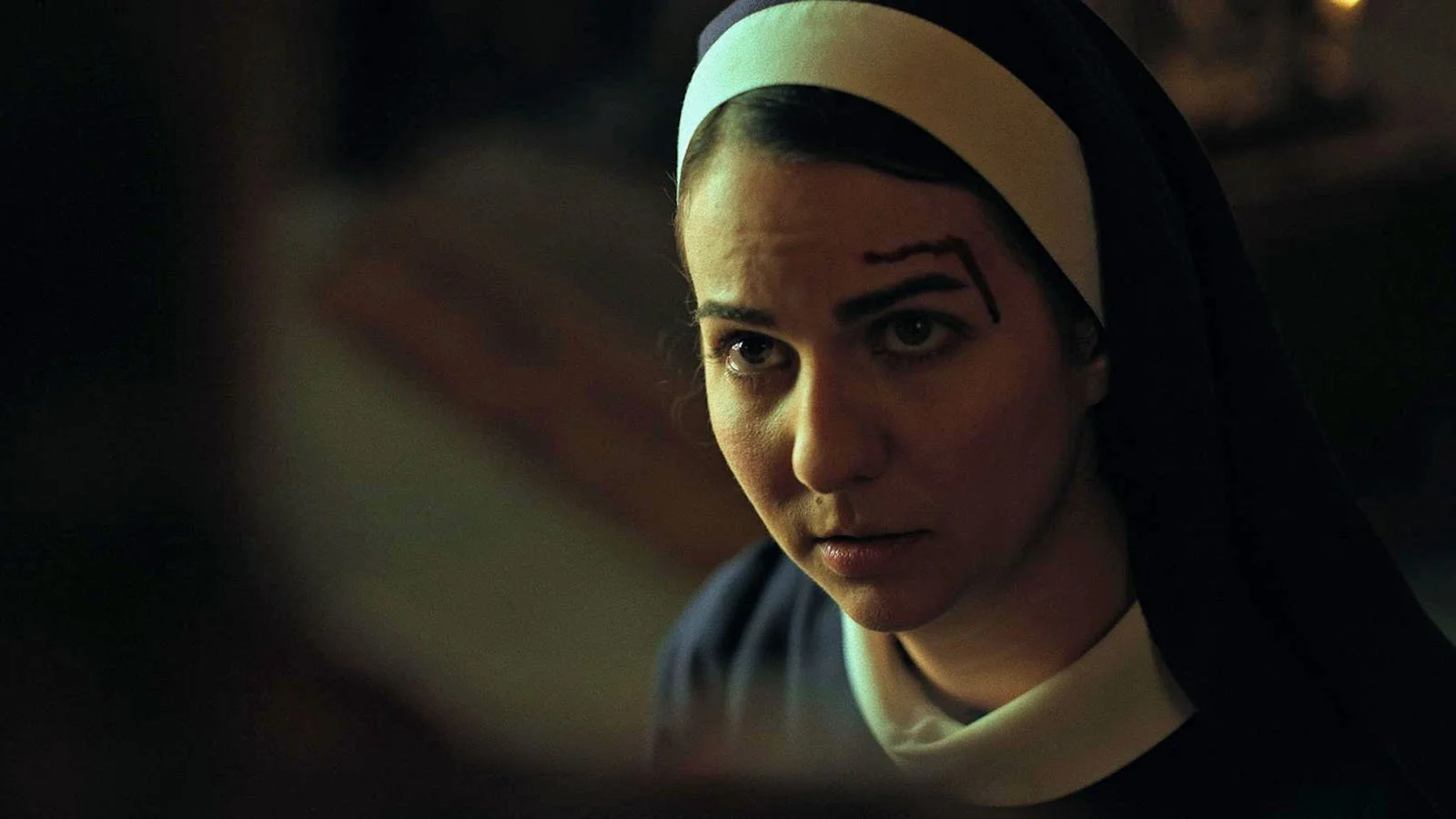 Colin Ward plays Herman with remarkable precision. His performance is controlled yet explosive, fragile yet defiant, and it captures the complicated duality at the heart of the story. Herman is a mountain recluse haunted by a dark force, but the film makes clear early on that the most terrifying intruder is the one already living inside him. When Suzann Toni Petrongolo appears as Sr. Mary, one of his late-night visitors, her presence pushes him toward a reckoning he can no longer postpone. Petrongolo delivers a haunting mix of compassion and quiet authority, amplifying the film’s religious undertones without slipping into cliché.